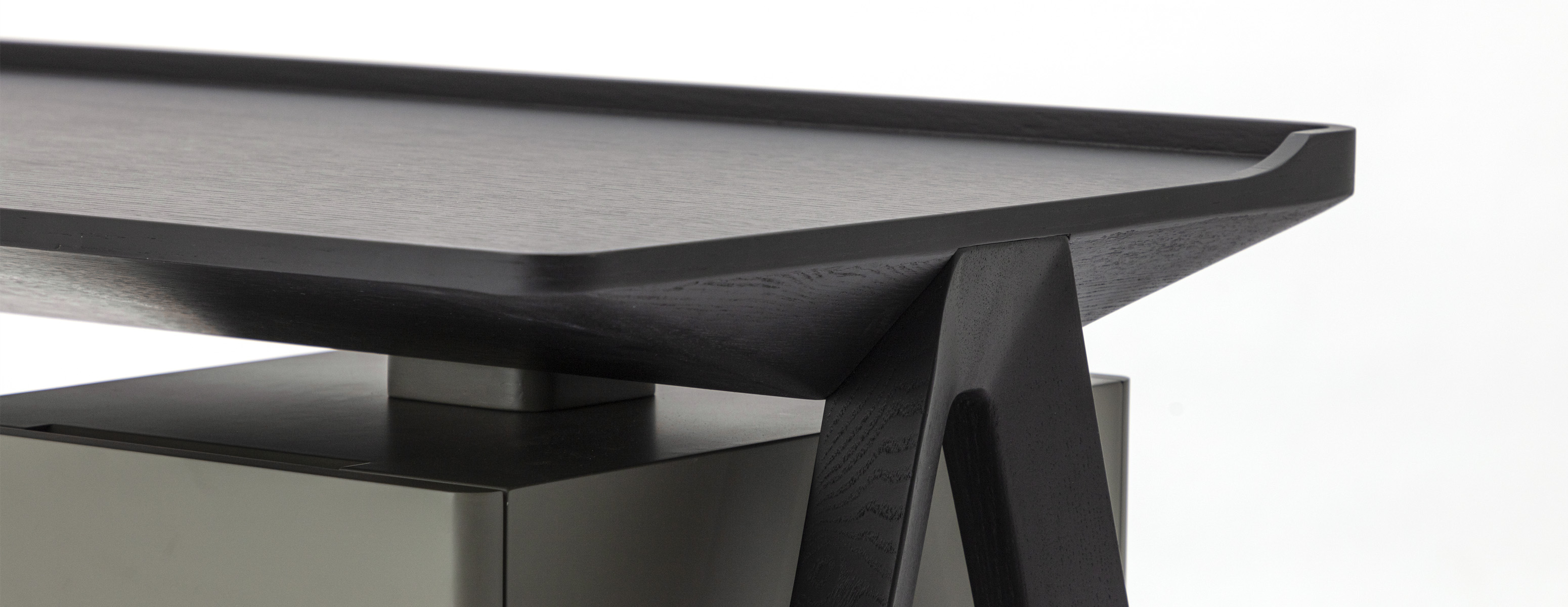 当几何理性遇见木质温润,在方寸间平衡功能与诗意。灵感源自圆规的平衡美学,以对称Y形支撑结构搭配梯形桌面,在小空间内构筑视觉韵律。